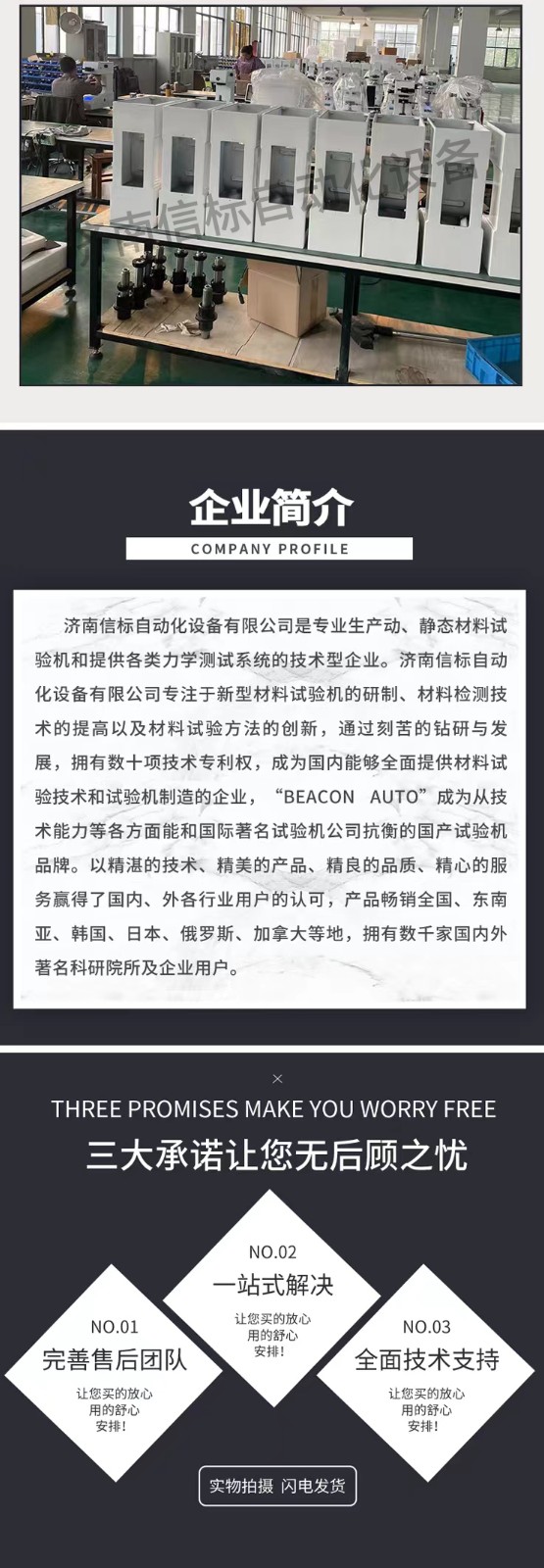 濟南信標自動化設備有限公司主要生產:動靜態(tài)萬能疲勞試驗機,接骨板彎曲試驗機,縫合線拉伸疲勞試驗機,髖膝關節(jié)磨損試驗機,電子萬能試驗機、液壓萬能試驗機、巖石三軸、四軸,電液拉力試驗機,材料試驗機,高低溫蠕變,高低頻疲勞,拉伸、扭轉、杯突等二十多個系列兩千多個的品種。
