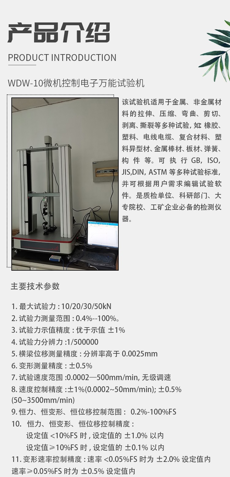 WDW-20B玻璃纖維增強塑料拉伸性能試驗機技術指標