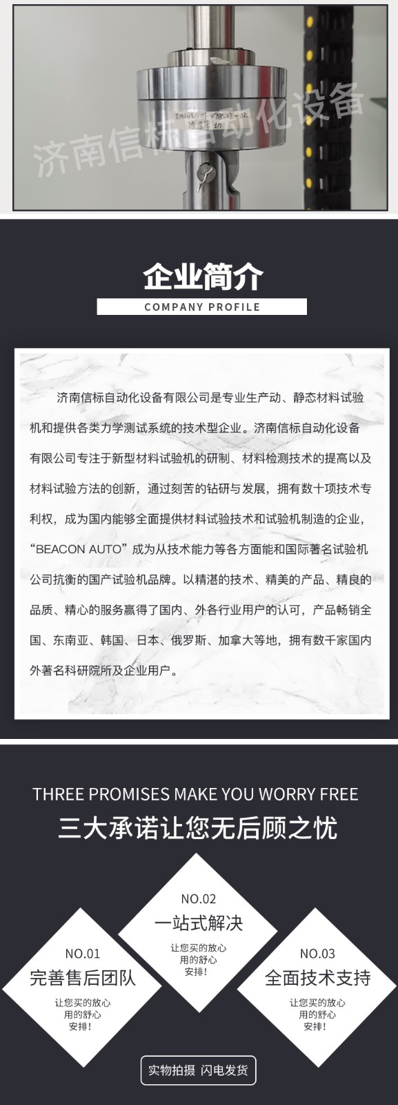 濟南信標自動化設備有限公司主要生產(chǎn):動靜態(tài)萬能疲勞試驗機,接骨板彎曲試驗機,縫合線拉伸疲勞試驗機,髖膝關節(jié)磨損試驗機,電子萬能試驗機、液壓萬能試驗機、巖石三軸、四軸,電液拉力試驗機,材料試驗機,高低溫蠕變,高低頻疲勞,拉伸、扭轉、杯突等二十多個系列兩千多個的品種。