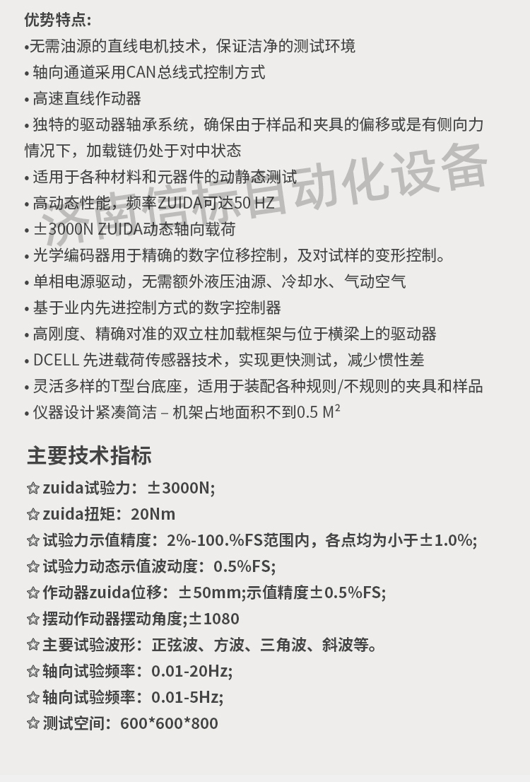 | 濟(jì)南信標(biāo)自動(dòng)化設(shè)備有限公司主要生產(chǎn):動(dòng)靜態(tài)萬(wàn)能疲勞試驗(yàn)機(jī),接骨板彎曲試驗(yàn)機(jī),縫合線拉伸疲勞試驗(yàn)機(jī),髖膝關(guān)節(jié)磨損試驗(yàn)機(jī),電子萬(wàn)能試驗(yàn)機(jī)、液壓萬(wàn)能試驗(yàn)機(jī)、巖石三軸、四軸,電液拉力試驗(yàn)機(jī),材料試驗(yàn)機(jī),高低溫蠕變,高低頻疲勞,拉伸、扭轉(zhuǎn)、杯突等二十多個(gè)系列兩千多個(gè)的品種。 |
